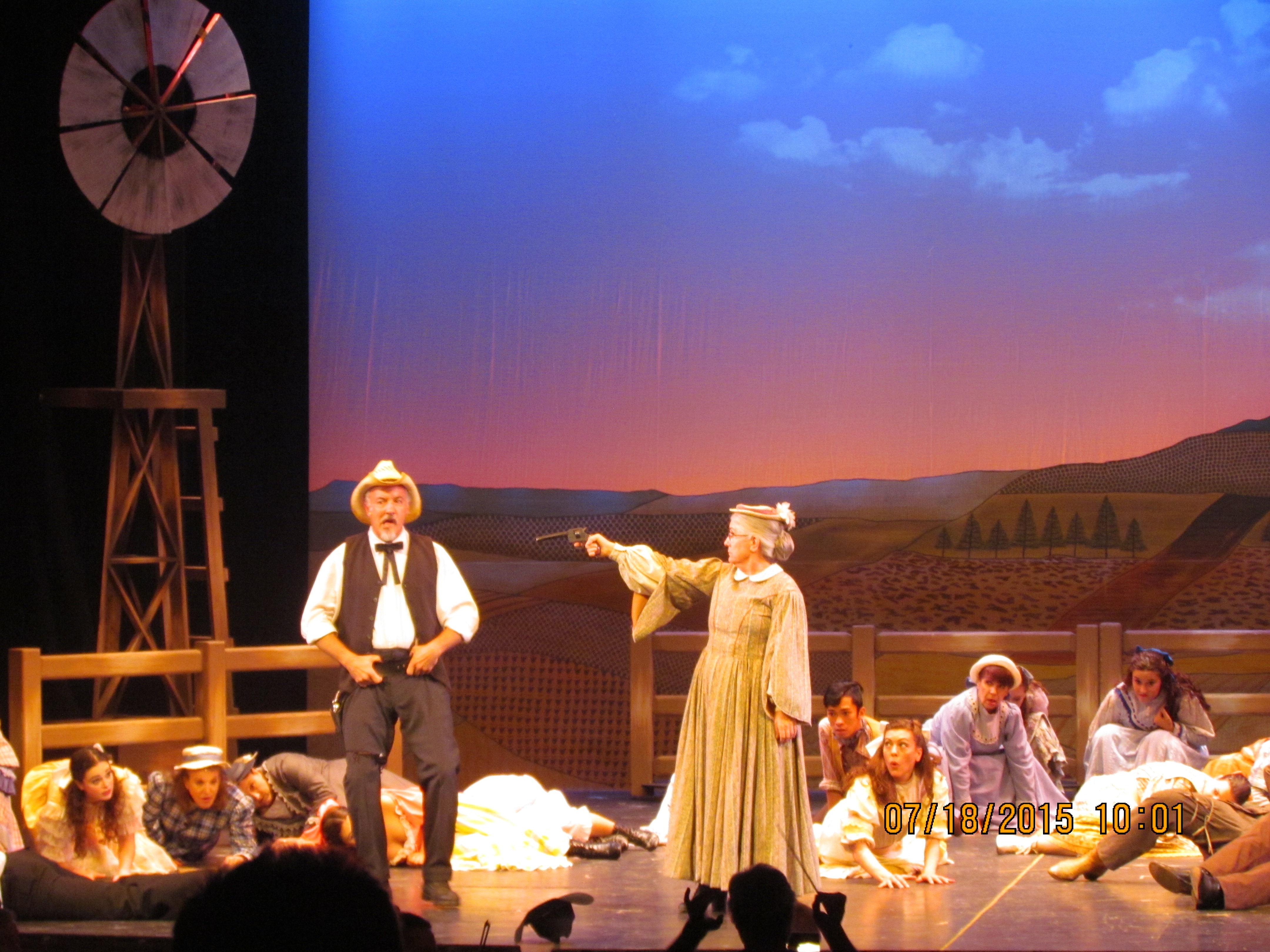 Last Friday we watched the Play Oklahoma. Music by Richard Rodgers, Written by Oscar Hammerstein and Play was directed by Margaret Davis. It has been many years since I watched any play. In India we could not attend any play even though we wanted to because of distance and time constraints. So my idea of a Play or Drama as we used to call it in childhood dates back to 80’s. I remember I had seen a kannada play with my parents and siblings by name ‘Mudukana maduve’ which translates to ‘Old man’s wedding’. It was a comedy. Then the actors had to come near the mic and speak aloud. There would not be more scenes as arranging background would be difficult or the different scenes were differentiated mainly by changing background curtains. Next one was my own participation in a play during my high school days at Jaganmohana Palace in Mysore. But looks like the Theatre has advanced to much more professional, interesting and enchanting stage with the help of technology.