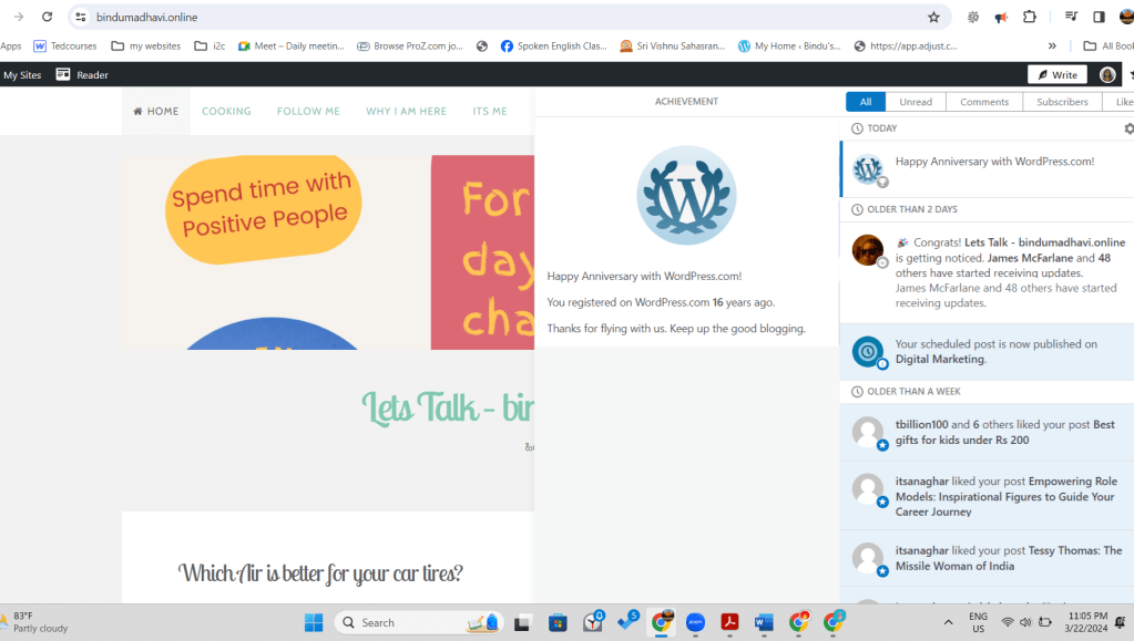 Uncategorized 16 years with WordPress ImageMarch 22, 2024 BinduLeave a comment Rate this:Share this: Click to share on X (Opens in new window) X Click to share on Facebook (Opens in new window) Facebook Click to share on LinkedIn (Opens in new window) LinkedIn Click to email a link to a friend (Opens in new window) Email Click to share on Pinterest (Opens in new window) Pinterest Like Loading... Related